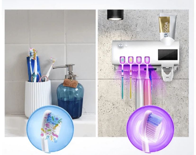 Soporte Esterilizador Cepillos Uv+ dispensador Crema Recargable